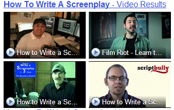 Here's what videos you get if you go to Yahoo.com and type in "How to Write a Screenplay."