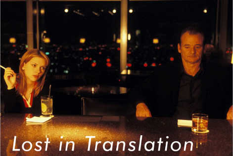 Coppola’s follow-up film, Lost in Translation, has a similar melancholy tone but no death. It centers on an actor (Bill Murray) in Japan film- ing a series of commercials. Bored and lonely, he befriends a young woman (Scarlett Johansson) who is also effectively alone in Japan as her husband has gone off on a pho- tography assignment. The two share their mutu- al loneliness as they explore Tokyo without ever really emerging into a mode of happiness.