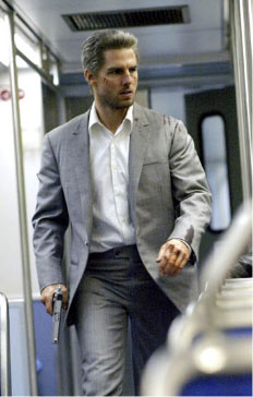 Tom Cruise plays a hit man in the upcoming Michael Mann film Collateral. There has been talk that Cruise is finally playing a down and dirty bad guy, a killer, who rides around in a cab all night unmercifully doing hits while the cabby (played by Jamie Foxx) unwittingly drives him. Unlike his role in Minority Report, where Cruise’s supposedly dark character with faults such as drug abuse, are overshadowed by the anguish from the death of his son, thus making his character very likeable and the audience very forgiving. I haven’t read the script for Collateral or been to a press screening yet, but I’d bet you that Cruise’s first real “bad guy” is still on the self somewhere just waiting for him. Because I can’t for the life of me believe without seeing, that there will not be some emotional level in this film showing how conflicted and tormented his character is and in the end, he’ll come across sympathetic if not downright likeable.