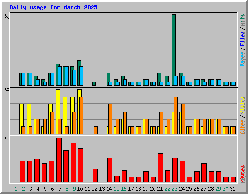 | Day | Hits | Files | Pages | Visits | Sites | KBytes | ||||||